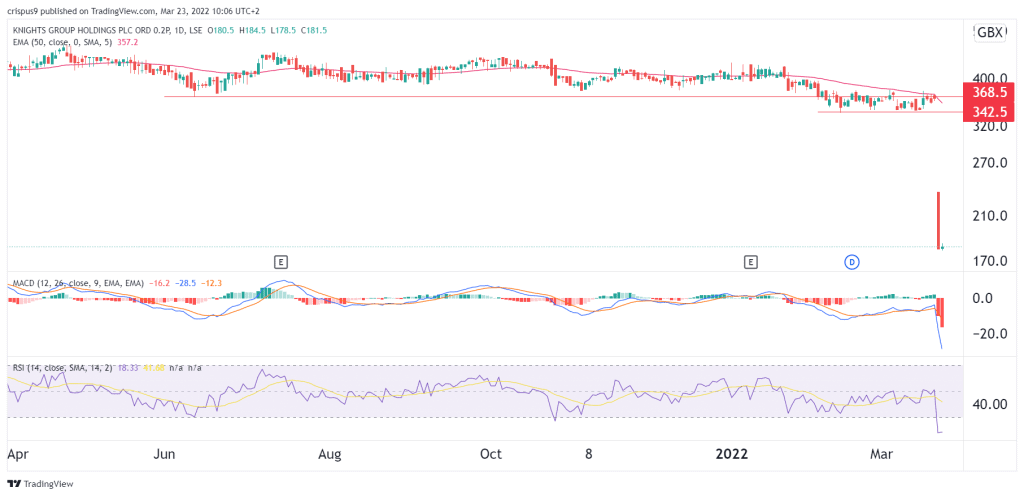 This week, the Knights share price declined sharply after issuing weak forward guidance. The company expects that its revenue will be 126 million pounds. This will be a better performance than the 103.2 million pounds generated in the same period in 2021. The management also expects to have a profit of 18.4 million, meaning that its profit rose by 23% while its profit fell by 2.2%. It attributed the weak performance to the impacts of the Omicron variant.