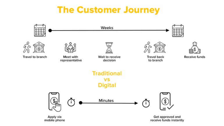 Traditional loans warranted numerous visits to the bank to fill out and apply for the loan and wait for one’s turn to meet the loan officer. A borrower had to await the credit decision, which typically took a few weeks for cross-verification of the customer’s financial information to establish their creditworthiness and ability to repay the loan.