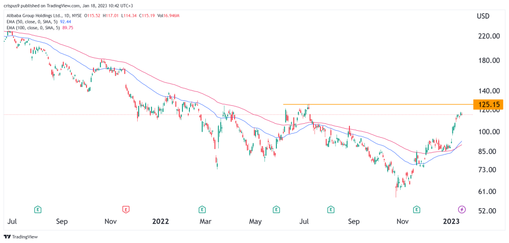 Alibaba (NYSE: BABA) stock price has been in a strong bullish trend in the past three months as investors move back to Chinese companies. The shares jumped to a high of $118, the highest level since July 8. It has soared by more than 97% from its lowest point in 2022, bringing its total market cap to over $309 billion. So, what next for Alibaba share price?