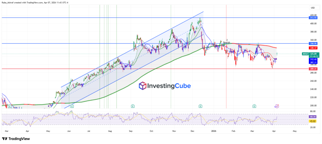 - While the chart indicates a short-term bearish phase below the $340 resistance, the company’s strategic shift toward custom AI accelerators and high-end networking remains the primary fundamental engine for long-term growth.
