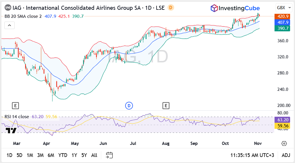 With the stock now above 416p, momentum remains firmly on the side of the bulls, as optimism builds that IAG’s upcoming numbers will mirror the strength seen in its European airline peers.