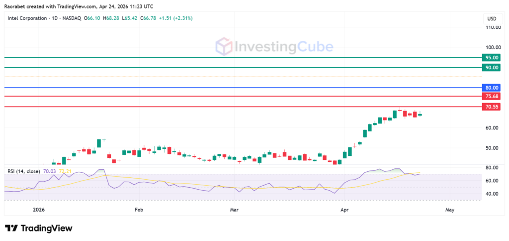 Intel stock price daily chart with the key support and resistance levels for April 24, 2026. Created on TradingView