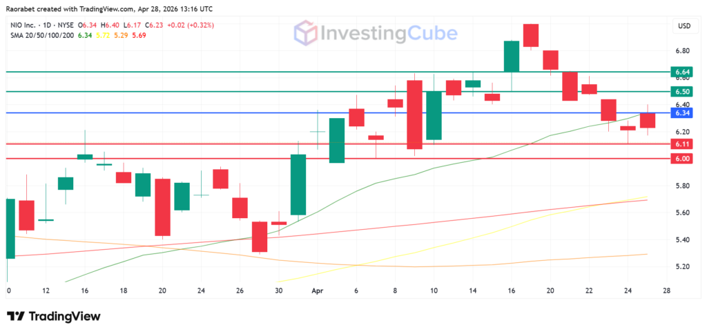 Nio stock price action on the daily chart on April 28, 2026 with the key levels of resistance and support. Created on TradingView