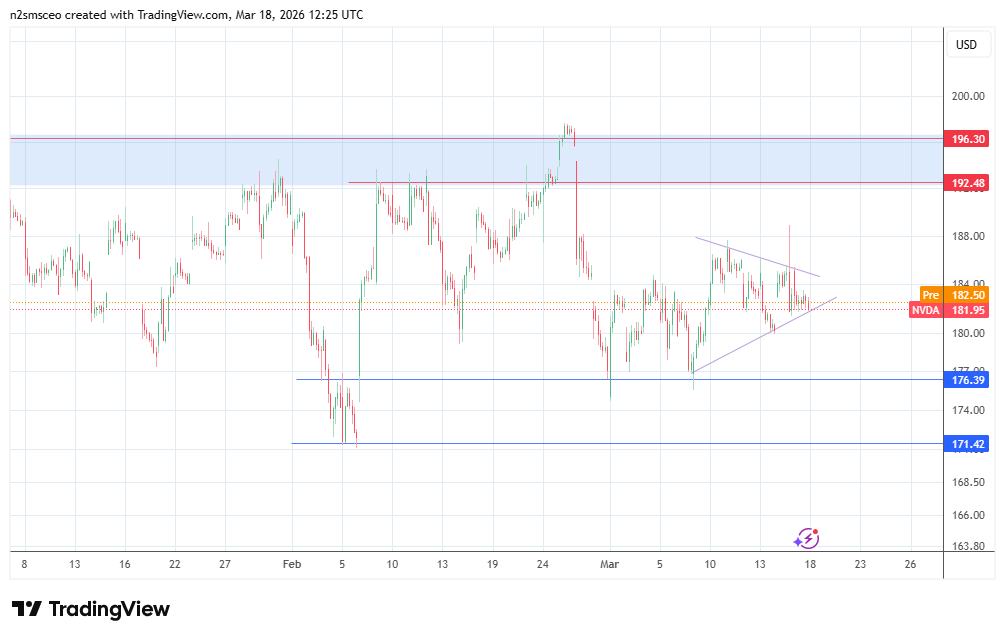 The Nvidia share price forecasts are now dominated by AI leadership metrics rather than valuation. The stock closed at $181.3 on 17 March. The AI capex/inference narrative continues to play a role in the macro drive for the stock, even as rate expectations and risk appetite also dominate the macro backdrop.