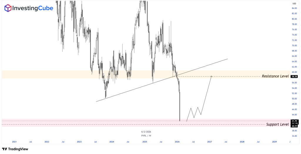 From a technical standpoint, PayPal is deeply oversold in a short-term, following the sharp sell-off. Historically, steep declines accompanied by unusual high volume often lead to periods of consolidation or short-lived relief rallies, as selling pressure temporarily exhausts itself and short sellers take profits.