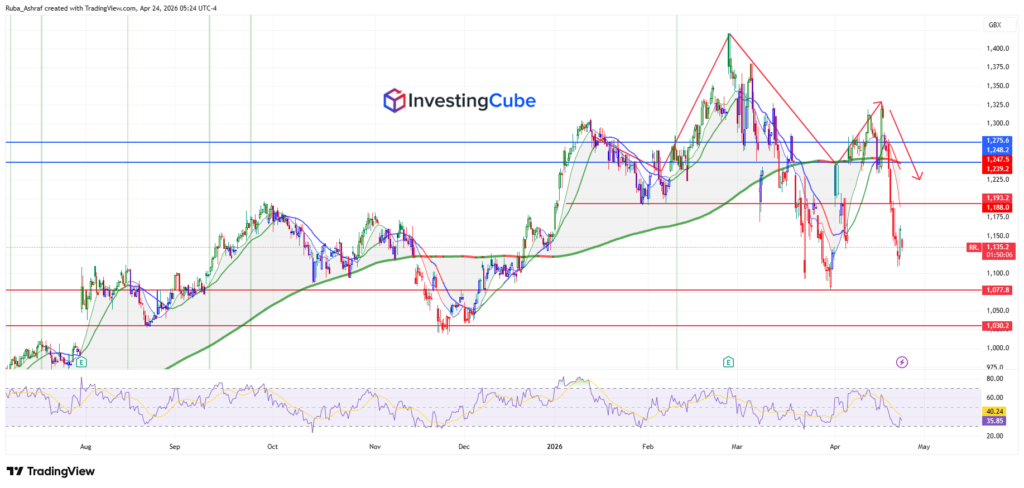 Rolls-Royce’s stock price action made a head-and-shoulders pattern and started its bearish direction, confirming a change in momentum after failing to hold the previous uptrend.