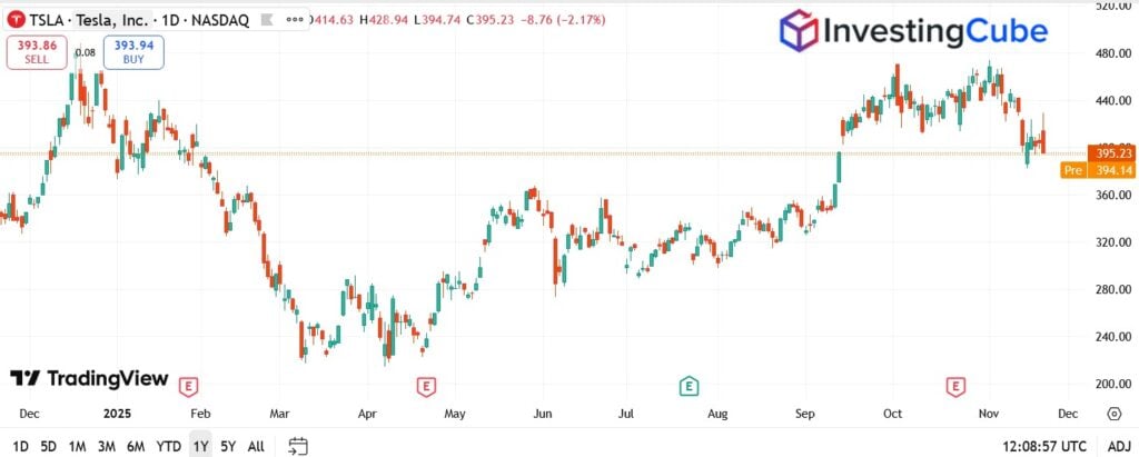 The decline is especially painful for retail investors who jumped in expecting a November rally. Buying the dip has historically been rewarded in Tesla. This time the strategy has delivered a fresh round of losses. The stock is trading lower year to date and remains well below its mid month high near 429.
