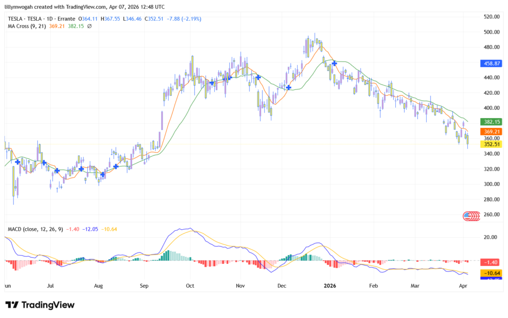 - Resistance: $369.21 Tesla needs to close a full day above this specific 9-period Moving Average to prove the downward momentum has officially stalled.
