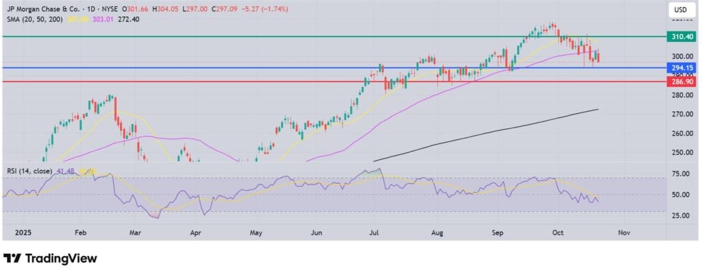 On Tuesday, JP Morgan’s stock price closed at $297.10, down 1.74%, with 5.7 million shares traded. But this is probably just a break after a great run, and there are reasons to think that things may pick up or perhaps get better by the end of the week. The bank’s most recent Q3 earnings were great, bringing in $46.43 billion. Since there isn’t any bad news today, this could be a good time to look for investors looking for bargains.